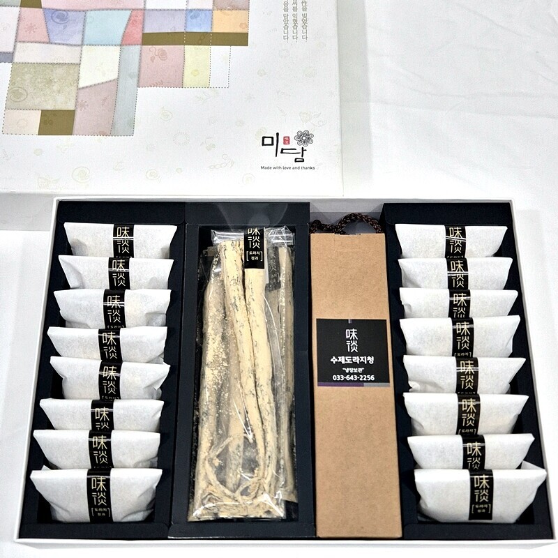 도라지정과 오곡칩 도라지청 편강(생강정과)를 골고루 담았습니다. 부모님